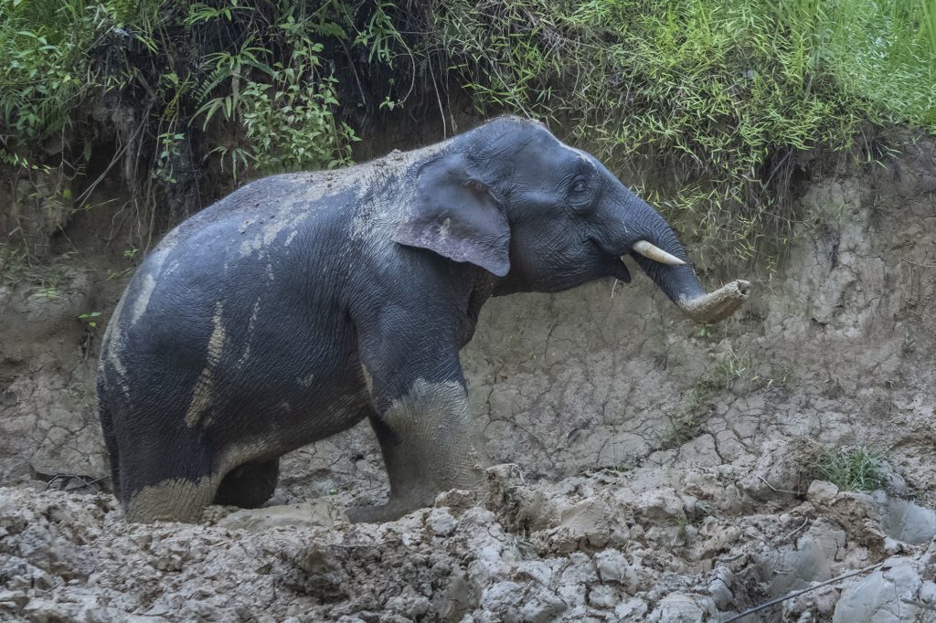 After lunch, our 2.5 hour journey back into the rainforest was by boat. We were joined by a single American lady, Paulette, and an American couple, Rockie and Andrea. On the way we stopped to admire a crocodile and a Lesser Adjutant. We could not believe our luck when a herd of elephants was spotted on the eastern bank of the river. Although we had to get to the lodge, we spent a few minutes watching and photographing the animals as they walked past.